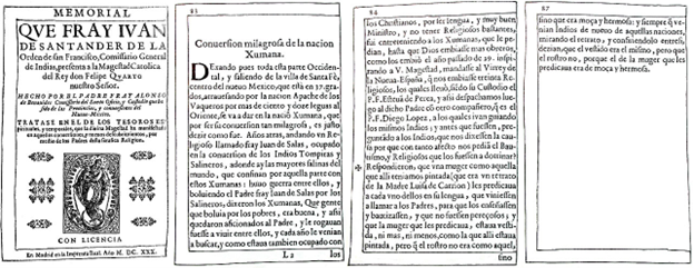The statue of Saint Dominic and Our Lady of the Blue, the blue reminiscent of lapis lazuli, and the pure sky. The apparitions of Jesus, Isaiah, the Virgin Mary, and other saints. The recapture of Santa Fe, New Spain, from the conquerors.